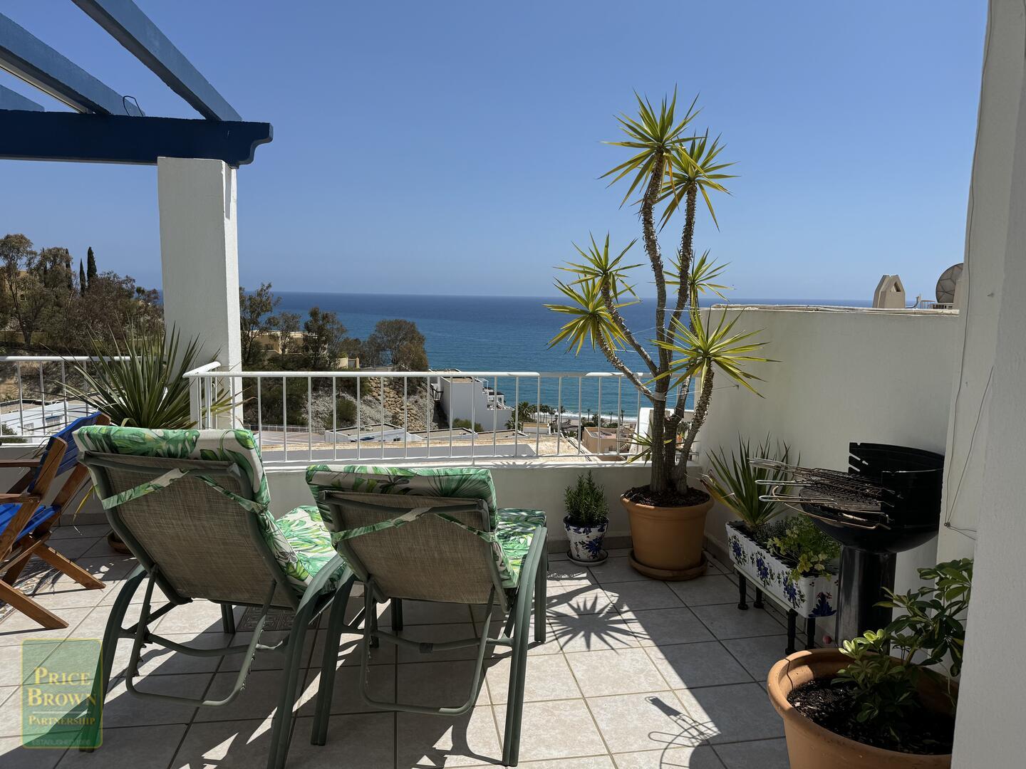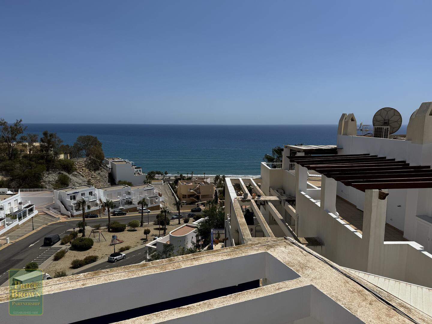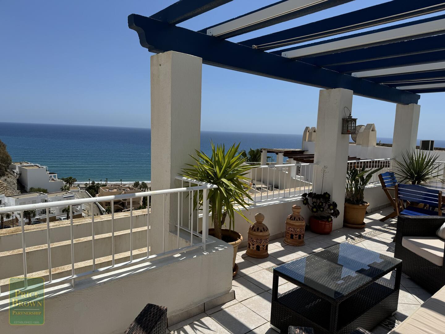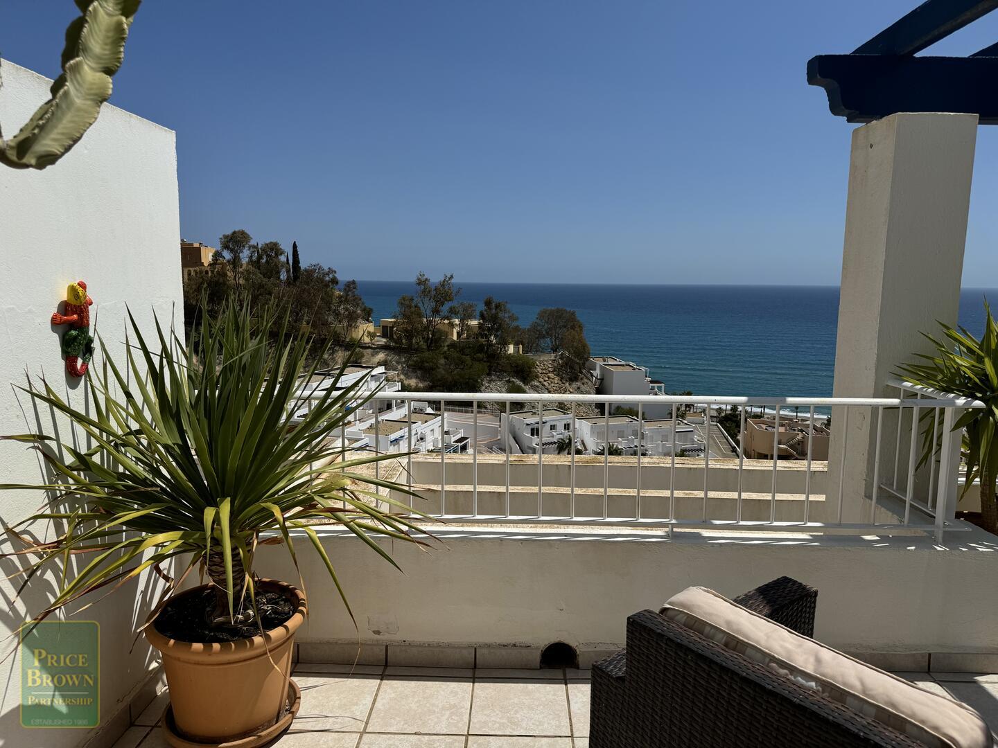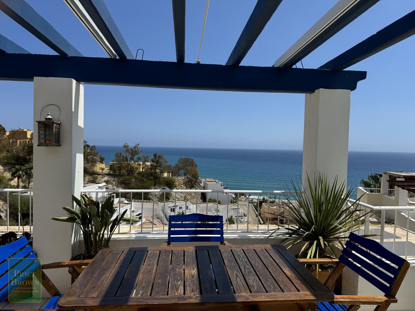 Mojácar Bella: Impresionante y magníficamente presentado apartamento con una enorme terraza de 43m2 con impresionantes vistas a la playa y al mar. Este ático orientado al este muestra perfectamente el amanecer en Mojácar y tiene un buen ambiente contemporáneo con una decoración elegante en todas partes. ¡Es luminoso, espacioso y aireado con vistas al mar desde todas las habitaciones excepto el baño! Consta de salón con puertas que dan a la terraza, aire acondicionado, una cocina de buen tamaño con puertas a la terraza y ventana grande, dormitorio principal con armarios empotrados, aire acondicionado y puertas a la terraza, segundo dormitorio doble con armarios empotrados y aire acondicionado, baño completo con ducha y lavabo doble. Mojácar Bella tiene una piscina comunitaria recientemente reformada y jardines bien cuidados. Los gastos de comunidad son sólo 49€ al mes.Incluido en el precio está el garaje cerrado.