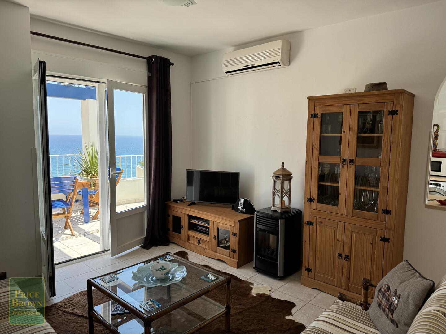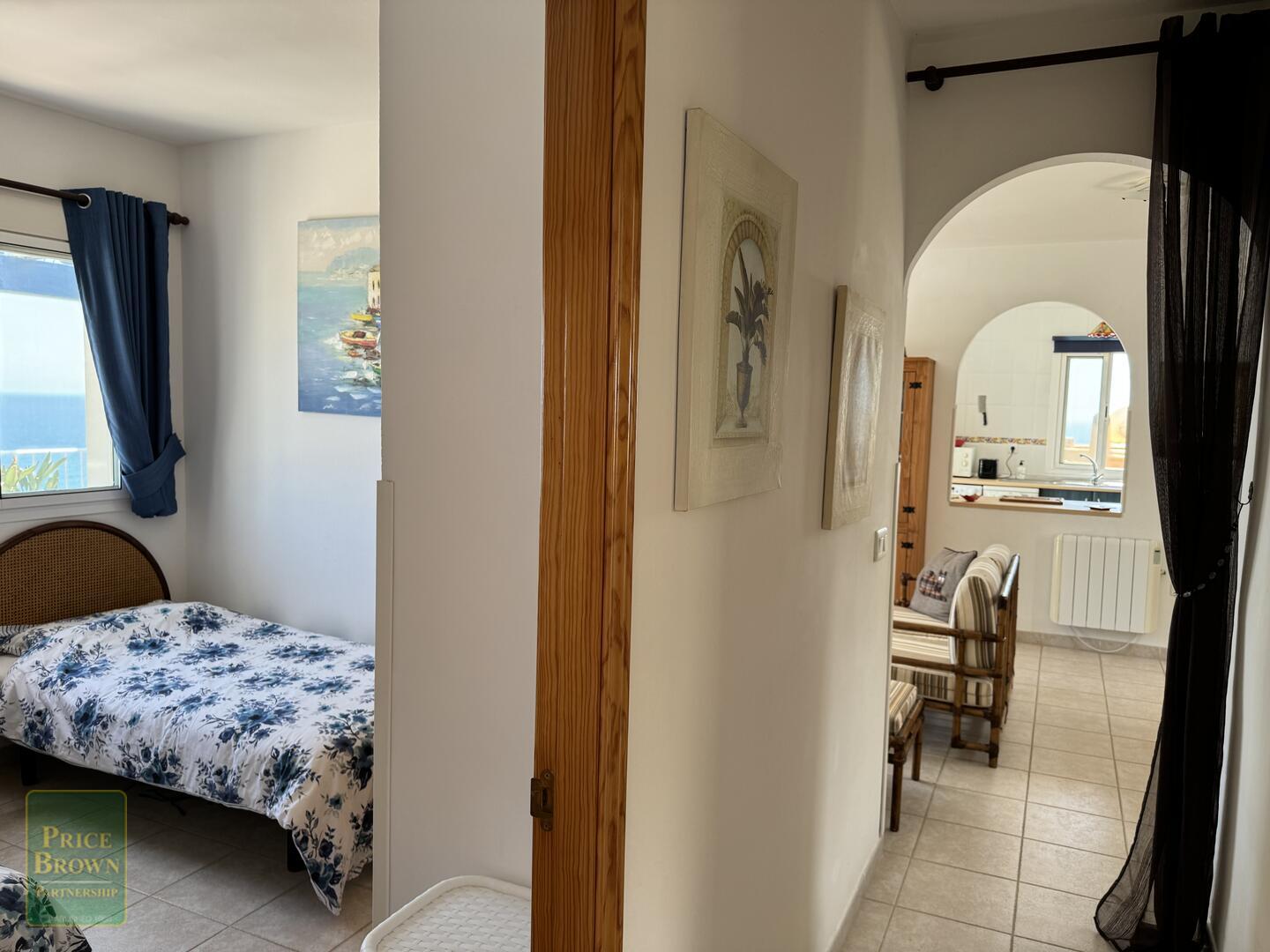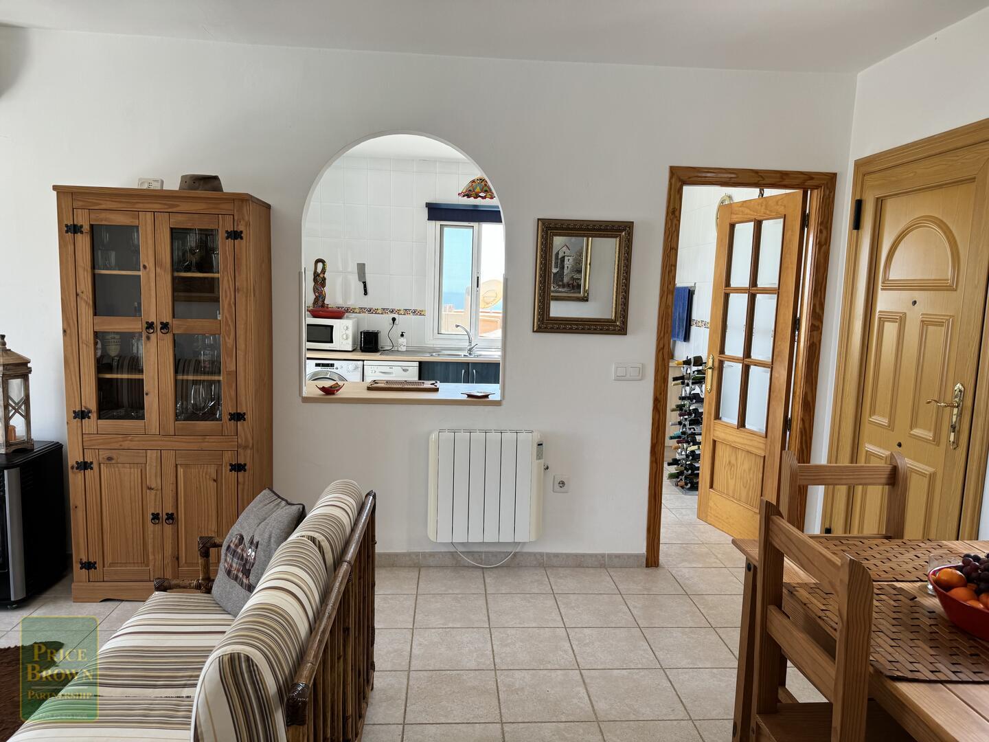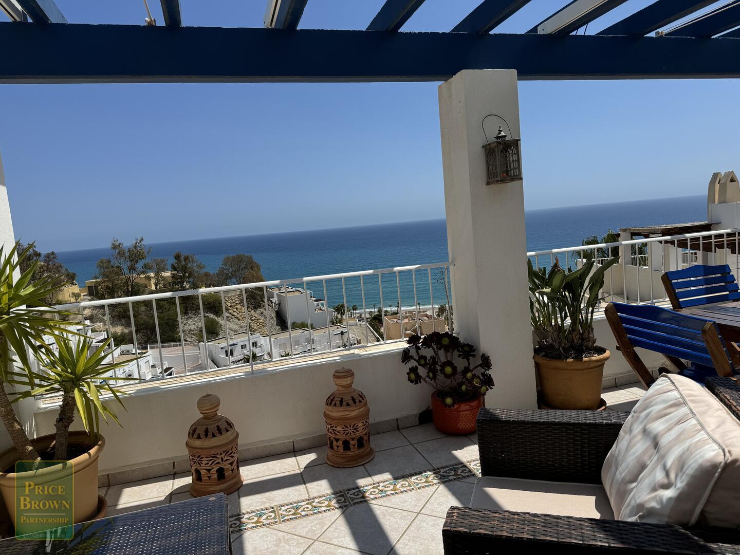 Mojácar Bella: Impresionante y magníficamente presentado apartamento con una enorme terraza de 43m2 con impresionantes vistas a la playa y al mar. Este ático orientado al este muestra perfectamente el amanecer en Mojácar y tiene un buen ambiente contemporáneo con una decoración elegante en todas partes. ¡Es luminoso, espacioso y aireado con vistas al mar desde todas las habitaciones excepto el baño! Consta de salón con puertas que dan a la terraza, aire acondicionado, una cocina de buen tamaño con puertas a la terraza y ventana grande, dormitorio principal con armarios empotrados, aire acondicionado y puertas a la terraza, segundo dormitorio doble con armarios empotrados y aire acondicionado, baño completo con ducha y lavabo doble. Mojácar Bella tiene una piscina comunitaria recientemente reformada y jardines bien cuidados. Los gastos de comunidad son sólo 49€ al mes.Incluido en el precio está el garaje cerrado.