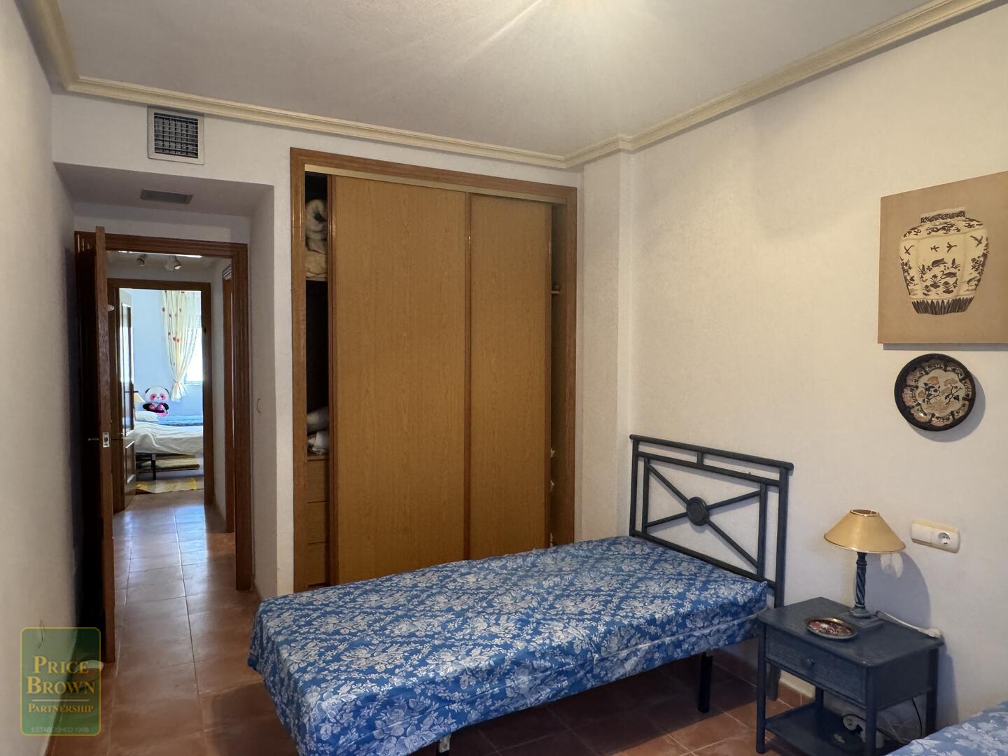 Marina de la Torre: Apartamento super espacioso de 3 dormitorios y 2 baños con una enorme terraza envolvente y espectaculares vistas al mar. El propietario actual puede aparcar muy cerca de la entrada de la propiedad, sin escaleras. El salón es de excelente tamaño y tiene acceso directo a la terraza. El dormitorio principal, también de buen tamaño, cuenta con baño en suite con ducha, además de otros dos dormitorios dobles y un baño de invitados. La cocina americana es funcional y cuenta con un lavadero. También hay una pequeña terraza trasera junto al lavadero. Las vistas desde la terraza son simplemente espectaculares, con vistas al mar y al campo de golf. La comunidad cuenta con dos piscinas comunitarias y los gastos de comunidad son bajos.
