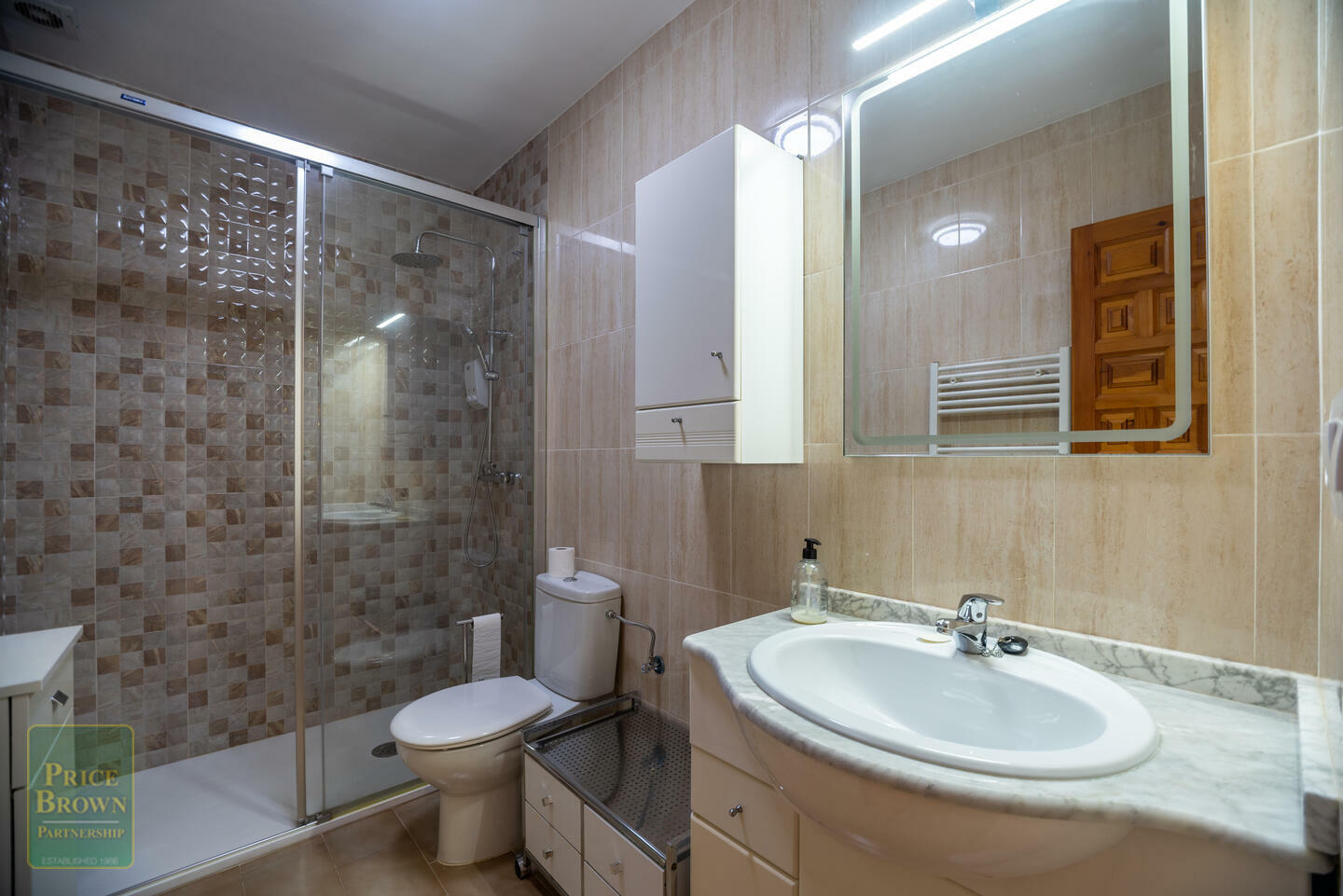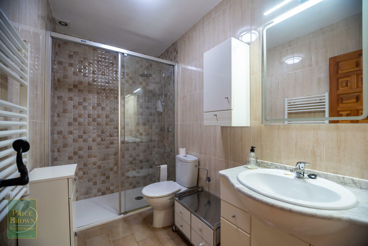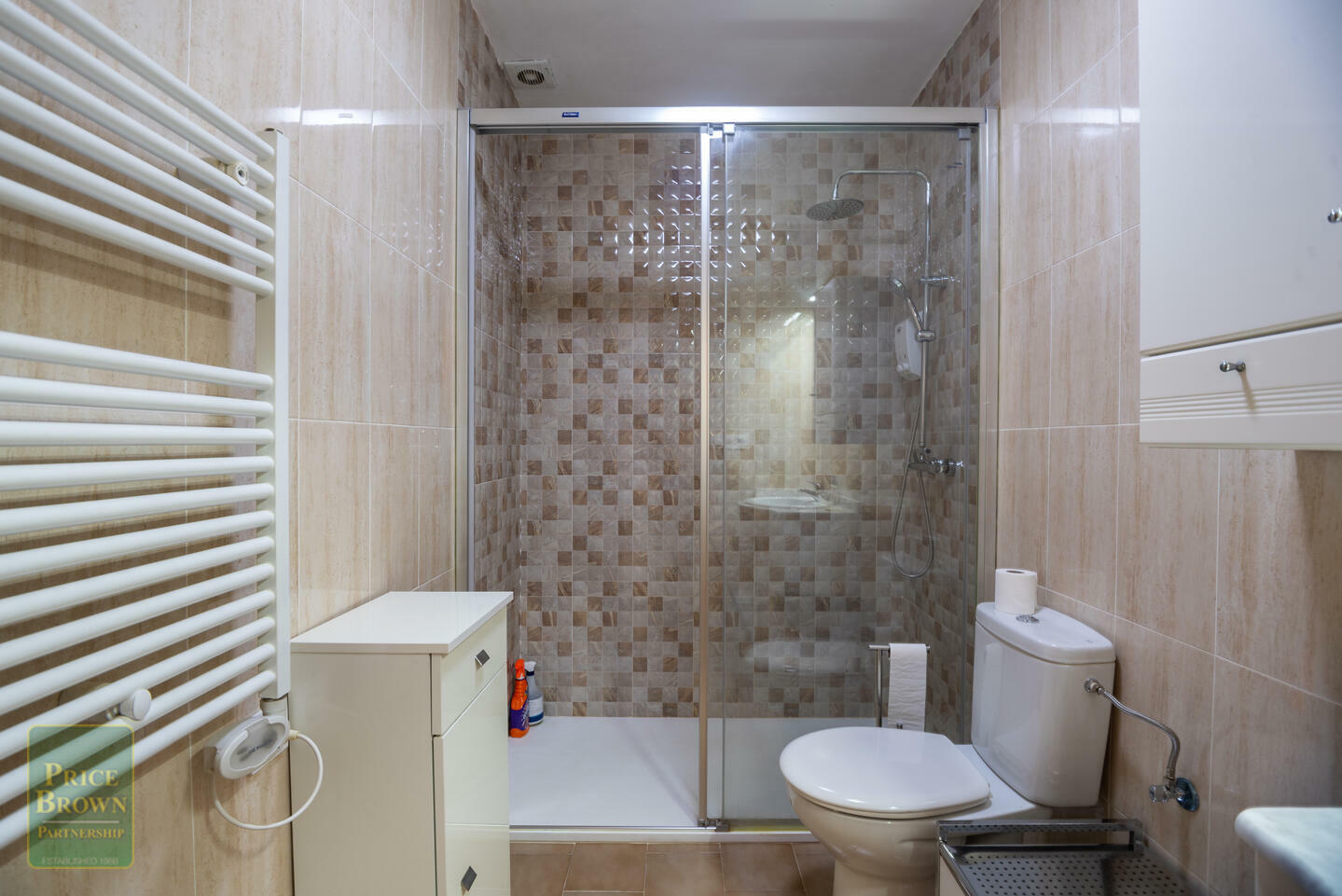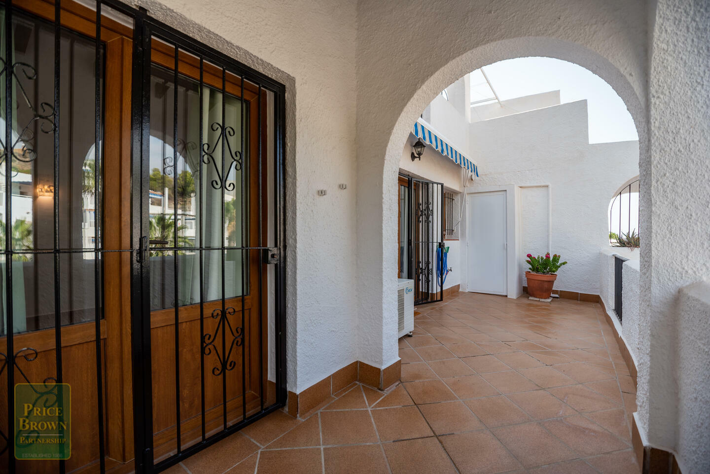 Diego Gea: A fabulous 2 bed, 1 bath south facing first-floor apartment with a 15m2 terrace about a minutes' walk to the best beaches in Mojacar. The property comprises an entrance hallway with storage, living room/dining room with double glazed patio doors to the terrace and reversible air conditioning, open plan kitchen (newly installed), master bedroom with built-in wardrobes, guest bedroom with built-in wardrobes, and a full suite bathroom with newly installed walk-in shower.