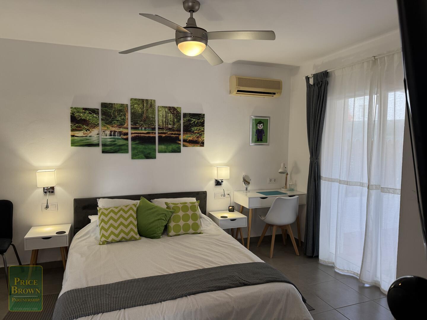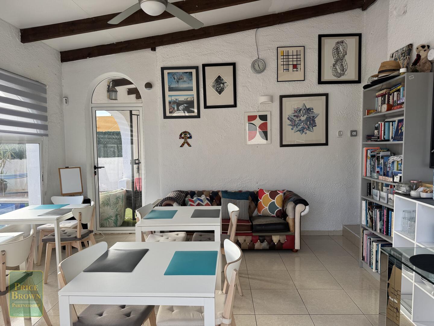 The main house comprises a large sunny breakfast room with views of the pool and bar area, living room with a wood burner and reversible air-conditioning, large kitchen with a utility off, principal bedroom with en-suite bathroom and access to a private courtyard, two further double bedrooms and 2 bathrooms. The main bedroom and the "blue room" have newly installed AC.