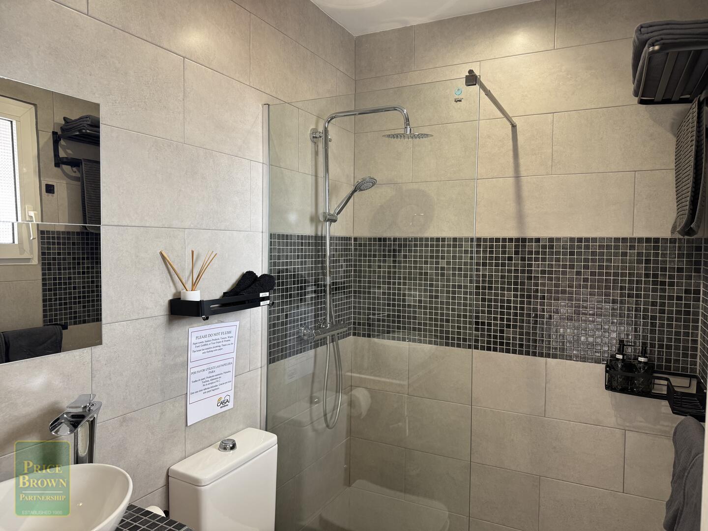 There are 4 renting rooms with en-suite bathrooms. Two are located on the ground-floor and two are located on the first floor. They are on the whole identical and offer comfortable accommodation. Each room has reversible air-conditioning, built in wardrobes, tea and coffee making facilities and television. The electricity in each of the rooms has been upgraded. They are approximately 45m2 each.