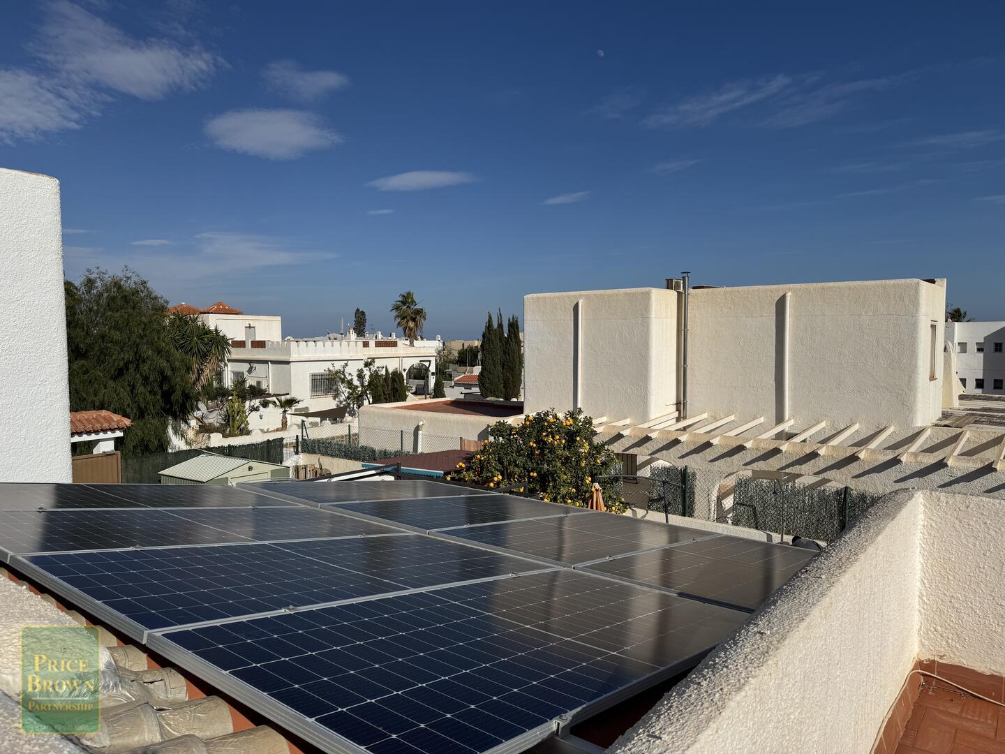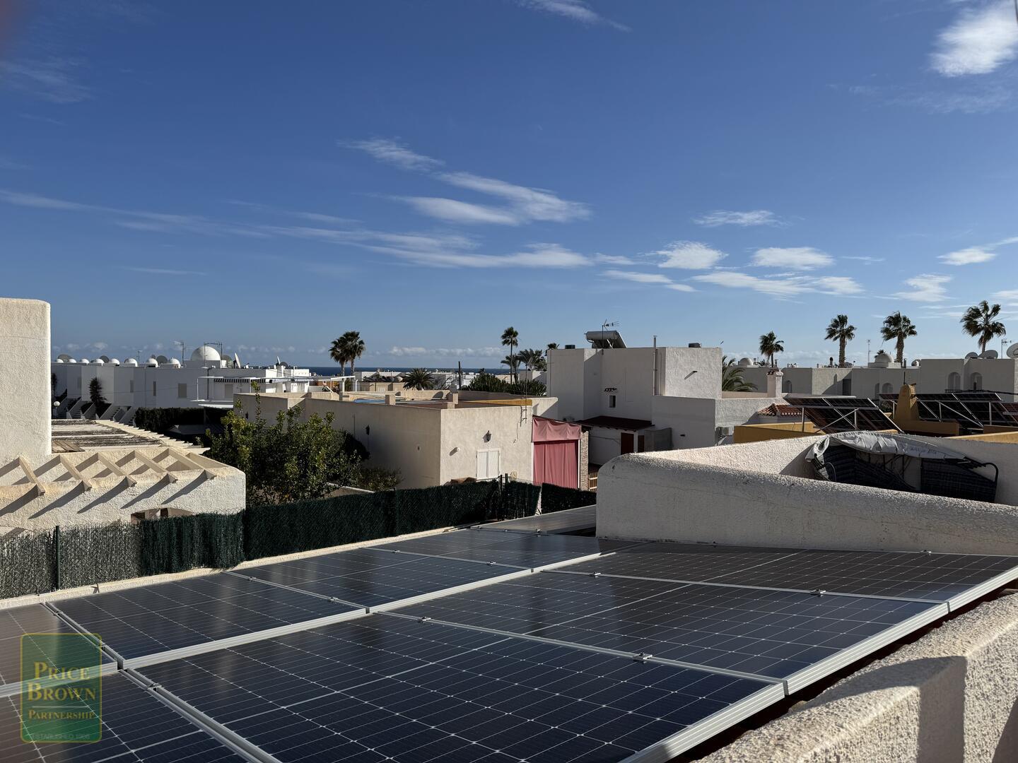 There is a roof solarium with amazing views and a sloping roof terrace that houses the solar panels & the storage sheds for the hot water and the electricity.