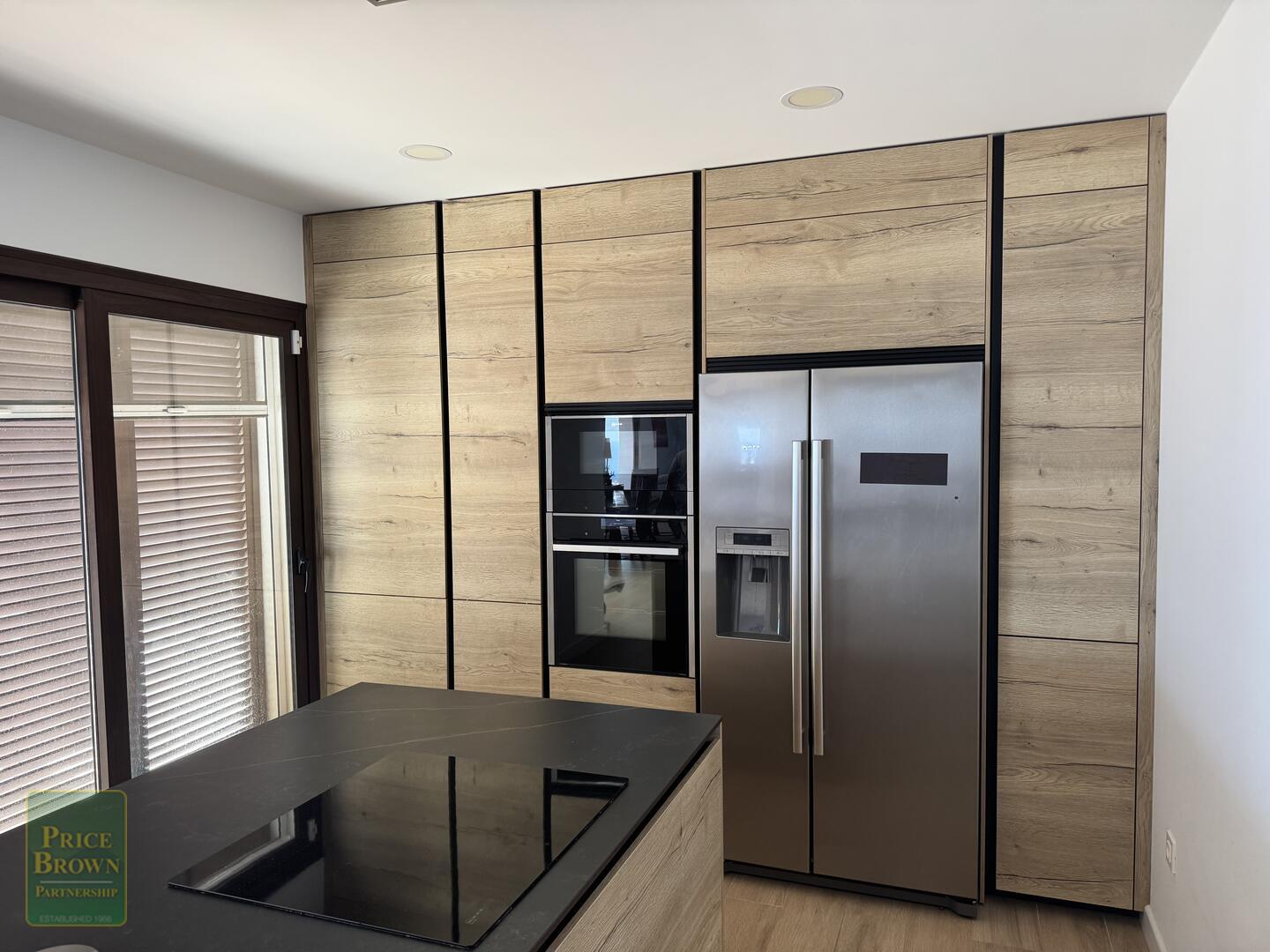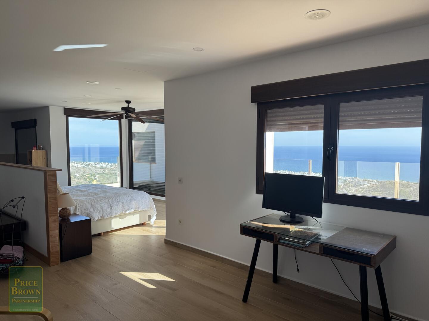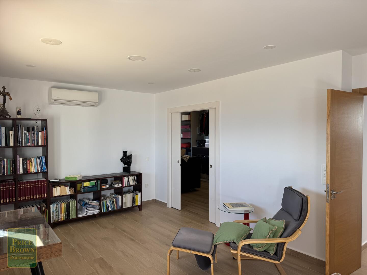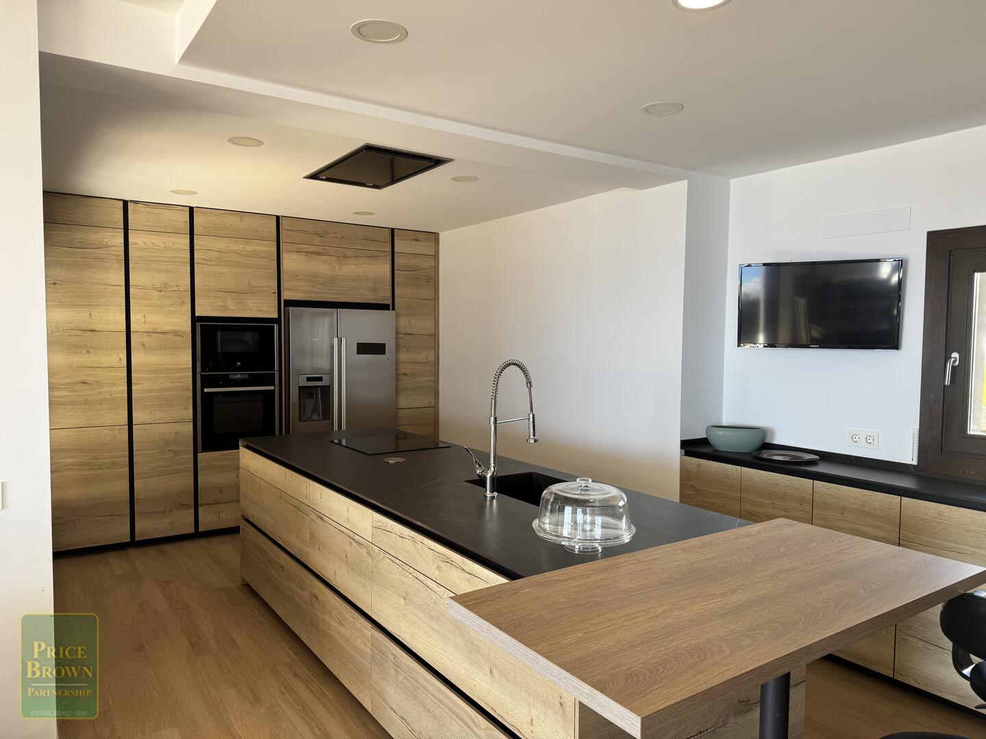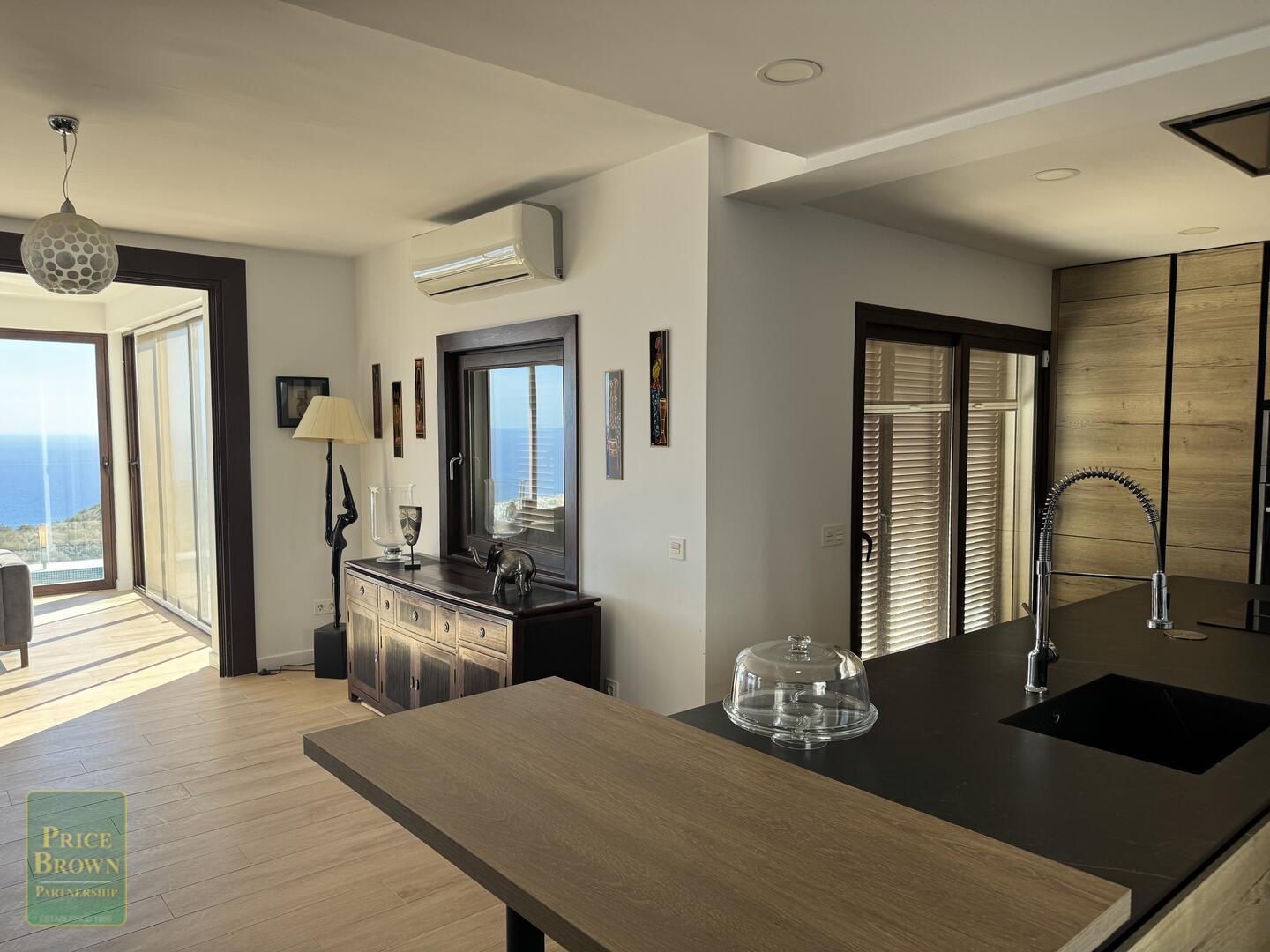 You enter the property into a hallway exposing the wooden bespoke staircase and from where you access the most incredible living space with a bank of floor to ceiling windows perfectly showcasing the Mediterranean Sea. The open-plan living area leads to the designer kitchen with, as you would expect, top quality appliances integrated perfectly into the kitchen architecture.