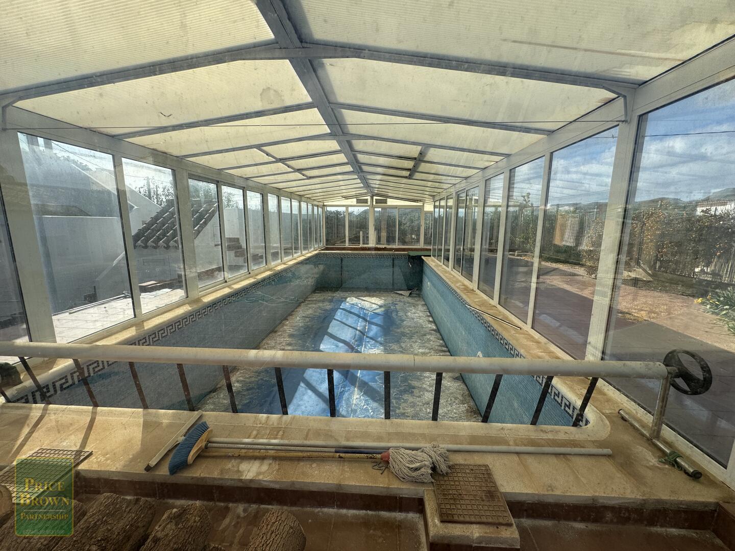 The outdoor space provides excellent potential for landscaped gardens, outdoor dining areas, and has a covered swimming pool that does need attention. The peaceful surroundings and open views make it an ideal location for relaxation, entertaining guests, or enjoying the warm climate of southern Spain.