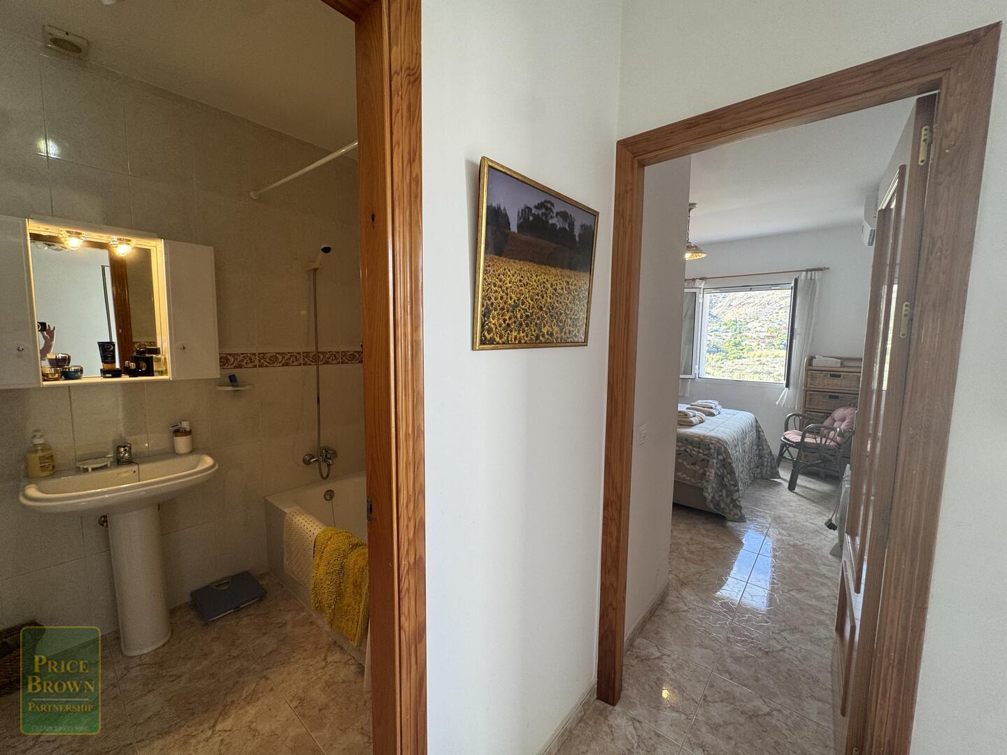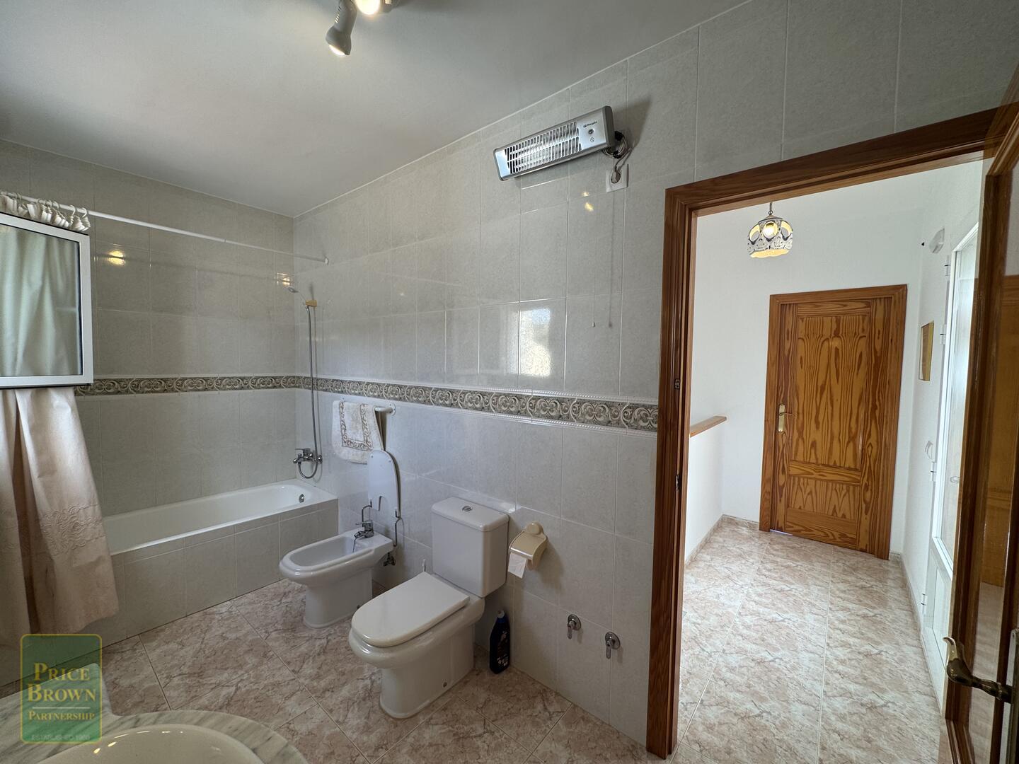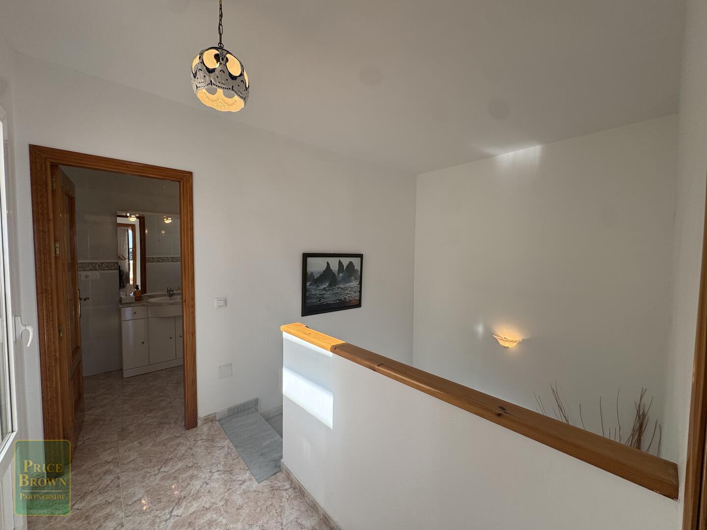 The staircase from the hallway takes you up to the very spacious master suite with a large bedroom with built-in wardrobes and across the landing is the en-suite bathroom. Patio doors from the landing lead to another huge terrace with both sea and mountain views.