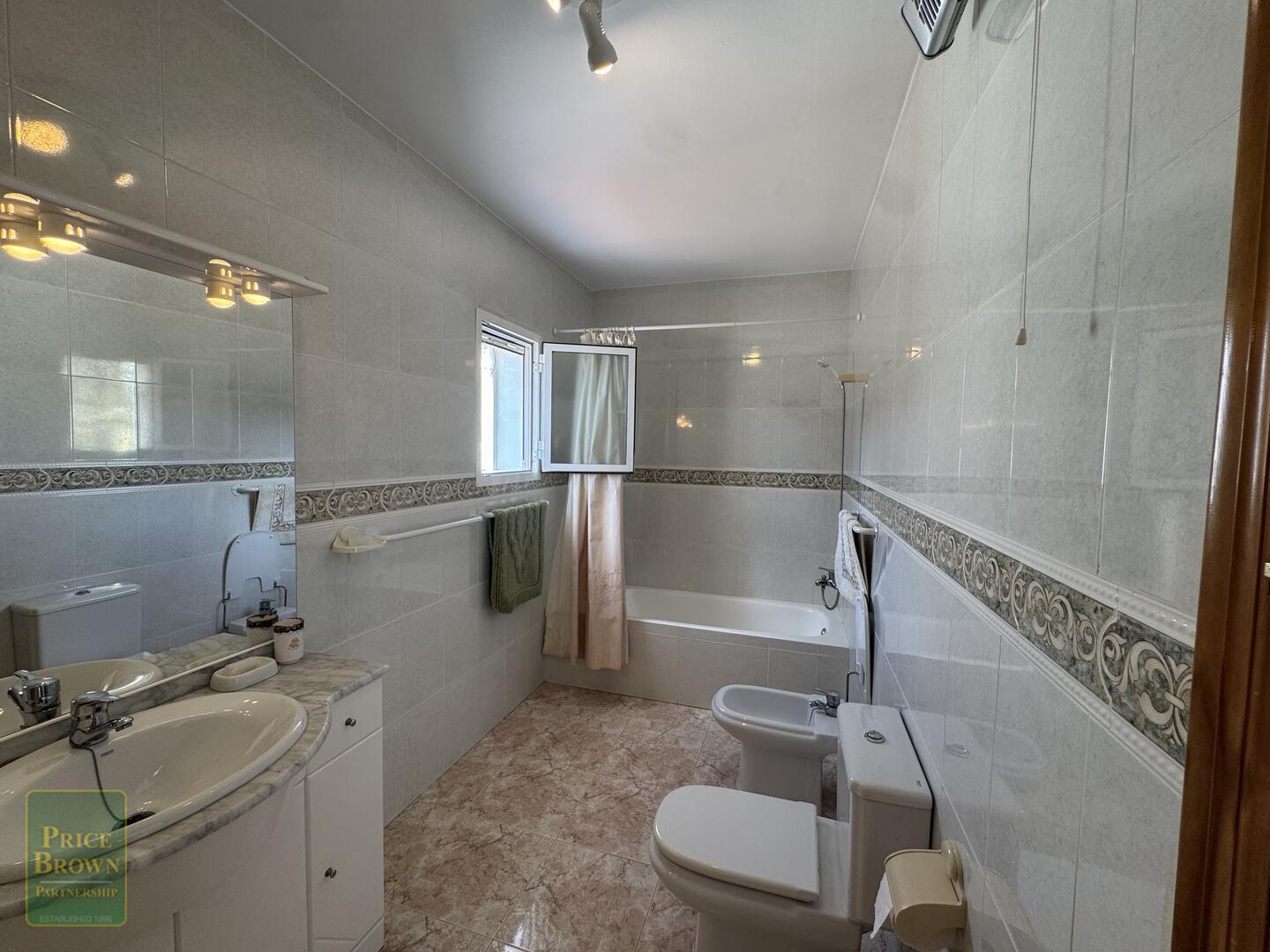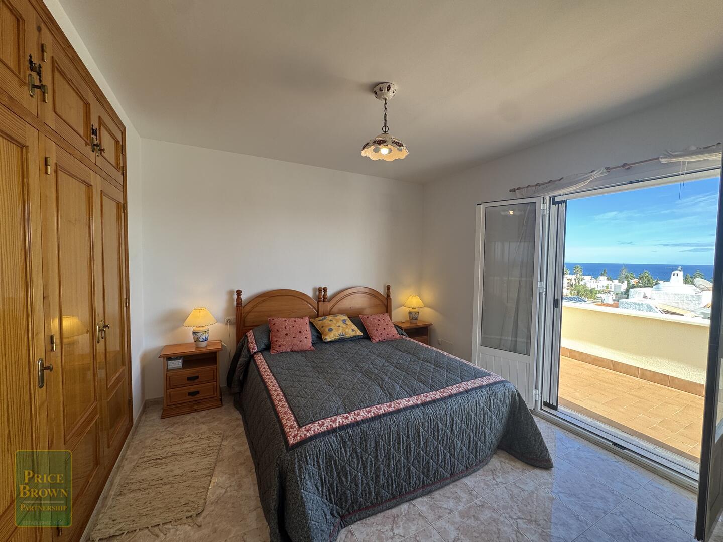 The property comprises hallway, living room with patio doors to a terrace with sea views, a good-sized kitchen with a good supply of wall and base units, two double bedrooms both with built-in wardrobes and a full size bathroom, under-stair storage cupboard with a sink. There is also a door leading from the hallway to the rear of the property where you have a huge terrace and lovely mountain views.