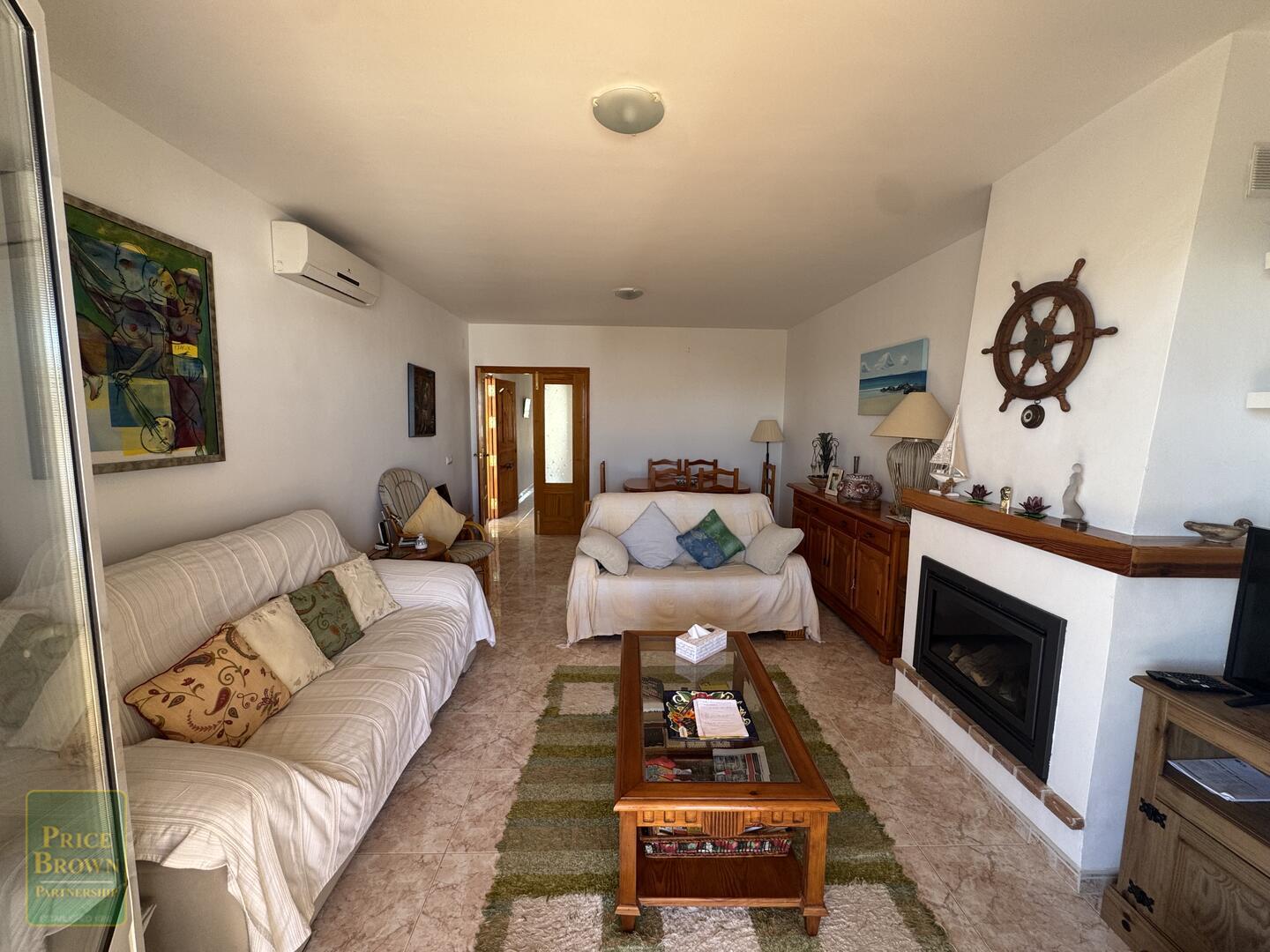 The living room also has a wood effect gas fire and there is air-conditioning throughout.