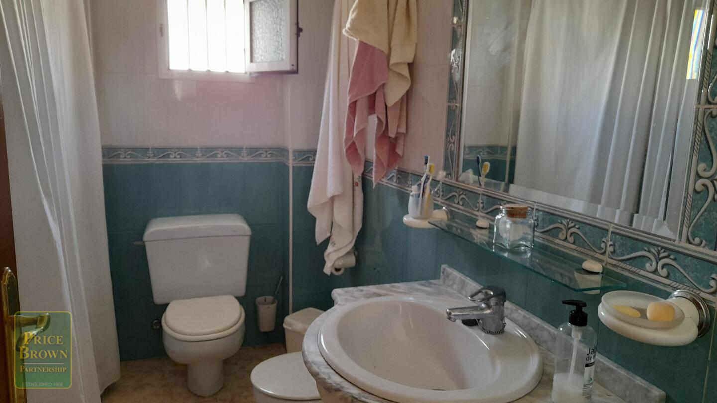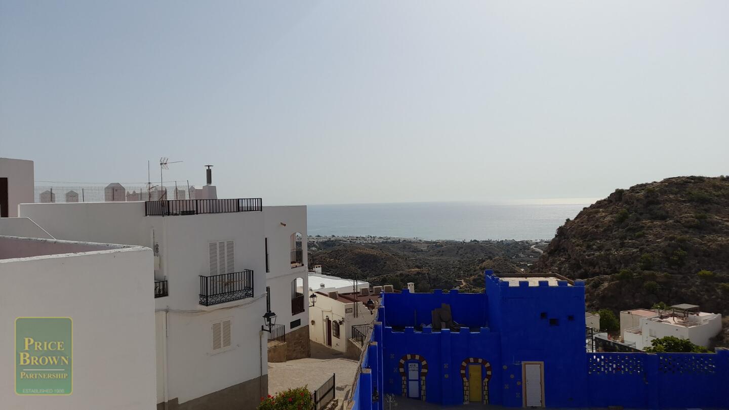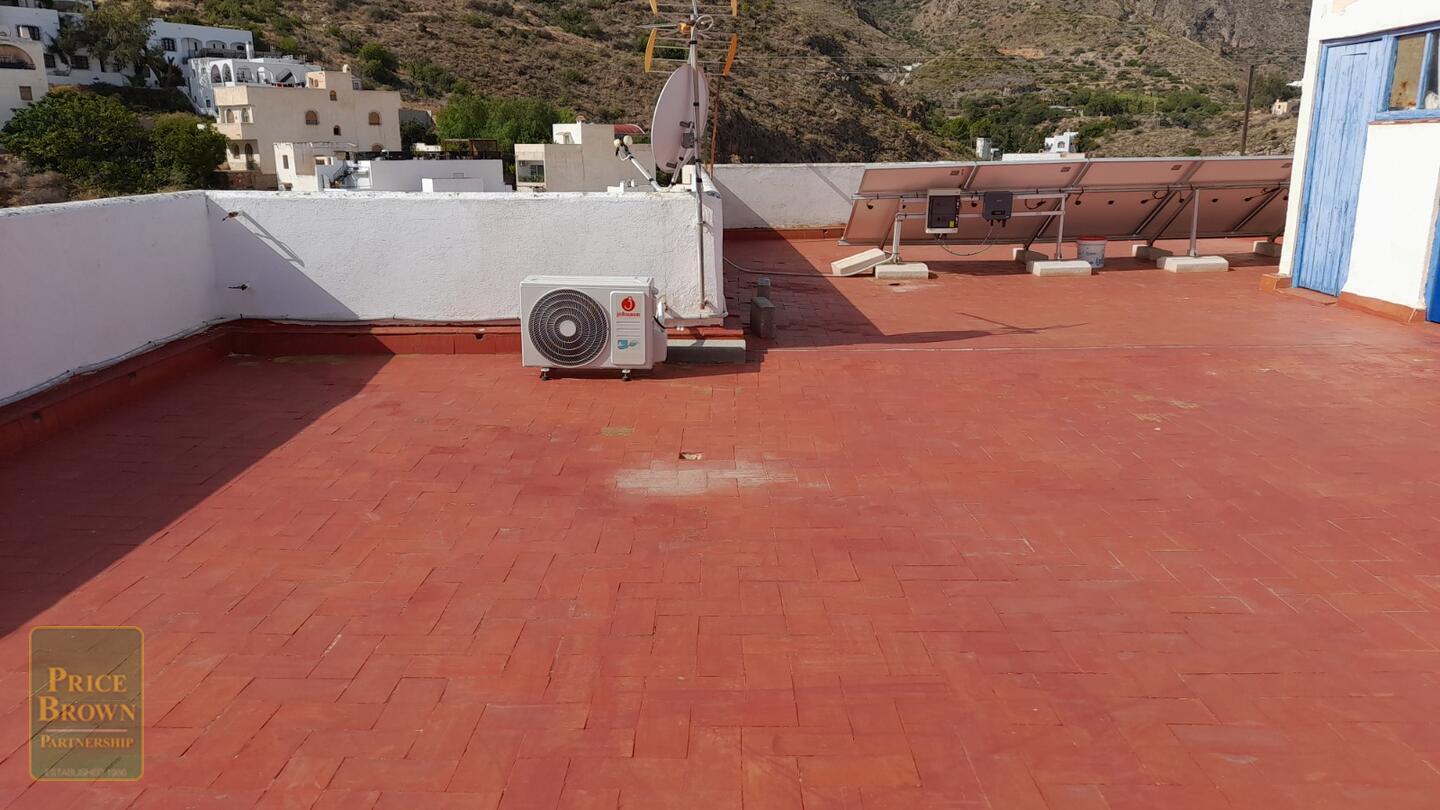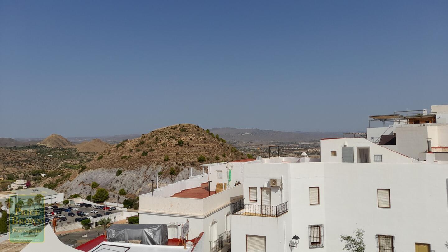 Mojácar Pueblo. This lovely village apartment is detached and located in a quiet, pleasant area, yet not far from the lift. From the roof terrace, you can enjoy 360-degree views of the sea, the mountains, and the village of Bédar. Inside, the house is much larger than you would expect. You enter into a spacious lounge that leads to a dining room with a pantry or storage cupboard, which then flows through to the kitchen. The kitchen also opens onto a small patio with an additional storage room. Down the corridor from the lounge, there are two sets of fitted wardrobes for extra storage. The property includes four bedrooms (two of which have fitted wardrobes) and two bathrooms. The lounge is equipped with hot and cold air conditioning, and all windows are aluminium-framed and double-glazed. The large master bedroom features a Juliet balcony. There is a main family bathroom, as well as a cloakroom with a small shower. This could potentially be extended to create another large family bathroom or an en-suite for the master bedroom. A gated path at the side of the house leads up to the neighbour’s property, and beyond that is a spacious roof terrace shared with the neighbour, who has solar panels installed on her side. There are two washing lines—one for each household—as well as two more storage units on the roof, again one for each. Included in the price is a parking space in the square behind the church. Additionally, just around the corner from the house is a shared storage area (located underneath the house), which is shared with the neighbour and is suitable for storing bicycles or a scooter.