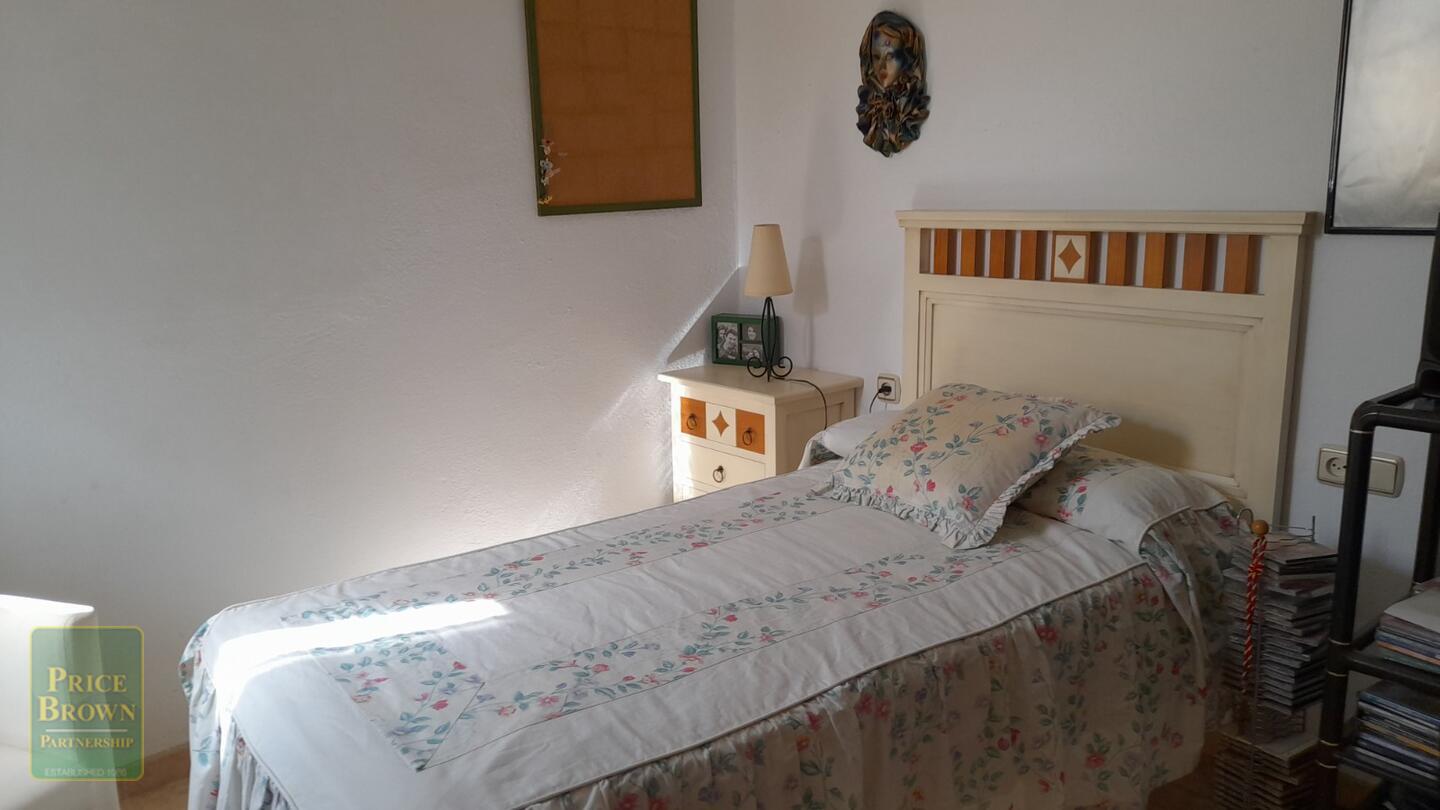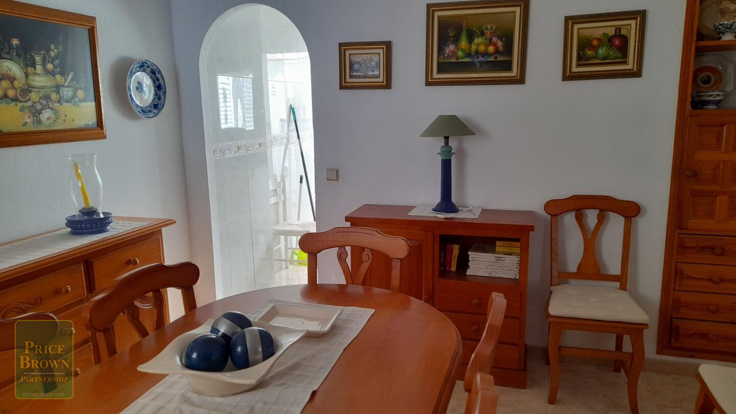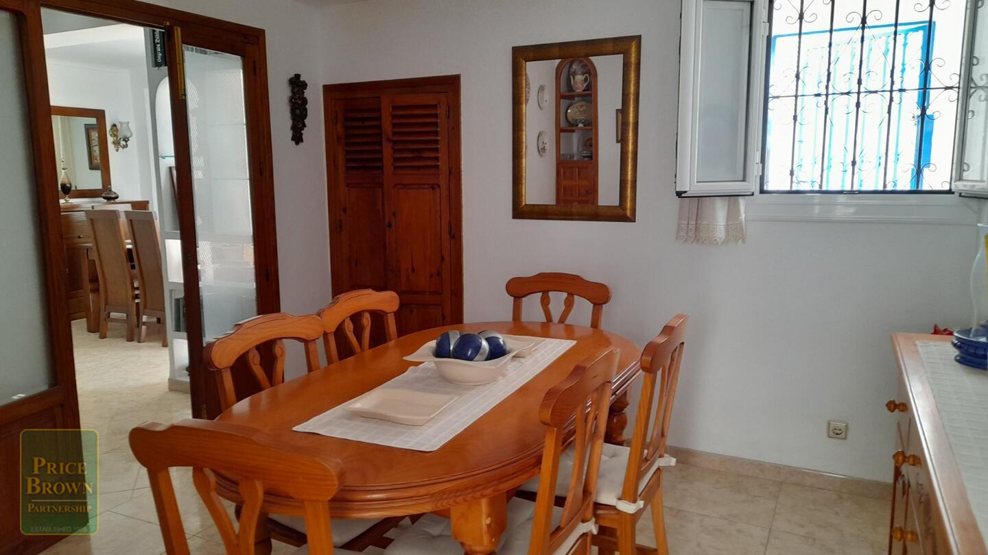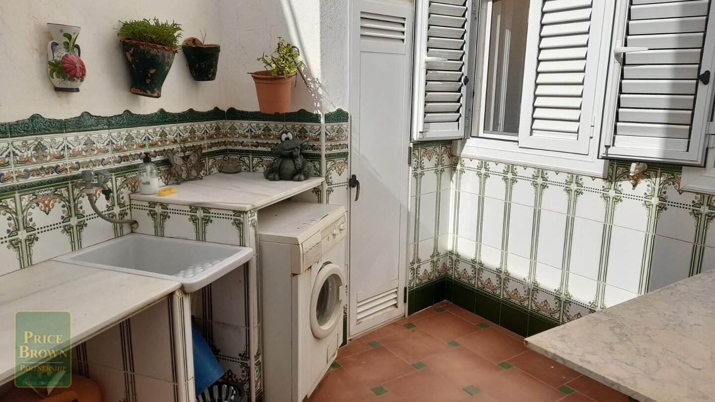 Mojácar Pueblo. This lovely village apartment is detached and located in a quiet, pleasant area, yet not far from the lift. From the roof terrace, you can enjoy 360-degree views of the sea, the mountains, and the village of Bédar. Inside, the house is much larger than you would expect. You enter into a spacious lounge that leads to a dining room with a pantry or storage cupboard, which then flows through to the kitchen. The kitchen also opens onto a small patio with an additional storage room. Down the corridor from the lounge, there are two sets of fitted wardrobes for extra storage. The property includes four bedrooms (two of which have fitted wardrobes) and two bathrooms. The lounge is equipped with hot and cold air conditioning, and all windows are aluminium-framed and double-glazed. The large master bedroom features a Juliet balcony. There is a main family bathroom, as well as a cloakroom with a small shower. This could potentially be extended to create another large family bathroom or an en-suite for the master bedroom. A gated path at the side of the house leads up to the neighbour’s property, and beyond that is a spacious roof terrace shared with the neighbour, who has solar panels installed on her side. There are two washing lines—one for each household—as well as two more storage units on the roof, again one for each. Included in the price is a parking space in the square behind the church. Additionally, just around the corner from the house is a shared storage area (located underneath the house), which is shared with the neighbour and is suitable for storing bicycles or a scooter.